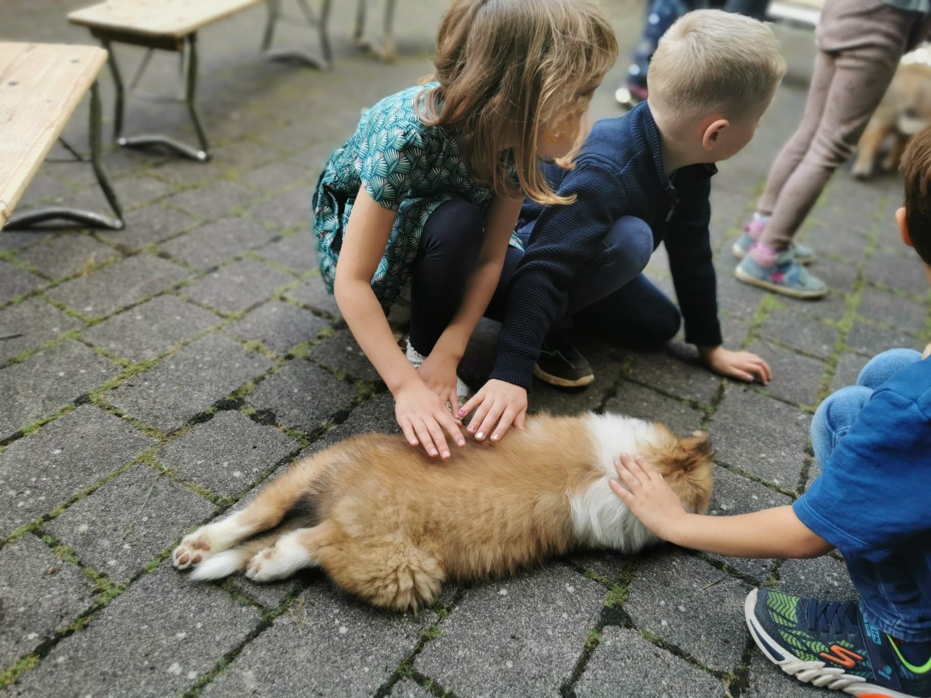 Als wir beim Tierarzt angekommen sind, haben wir auf einer nahegelegenen Wiese Alle schnell aus dem Auto gelassen.
